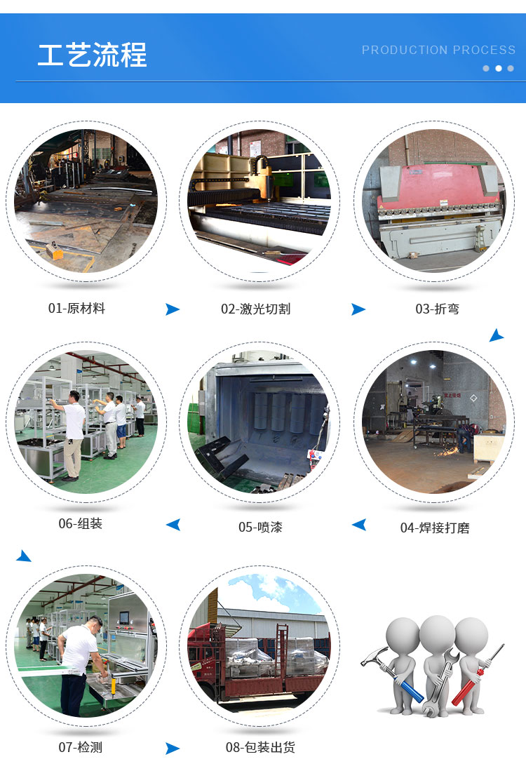 5)喷涂颜色:电泳铝型材机架,钣金喷涂颜色采用天蓝色319C;
