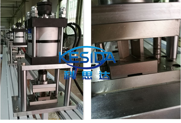 本机用于传统五金相框架,现代电热制品五金框边架等五金制品,来料为五金料卷电机自动拉料.通过多道五金冲模自动冲切“V”型口, 通过五金冲模自动定长冲切切断,长度可调,V型口位置距离可调,折槽采用多位置渐开式连续折边折槽,折后自动单条送出。