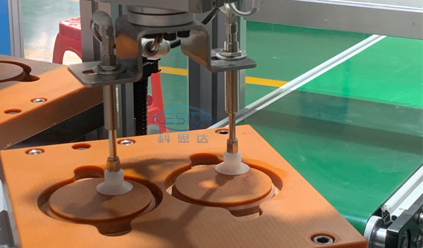 1.自动双联机械手上料规位及进料到转盘夹具.叠料台为双工位可切换式设计,确保不停机生产;