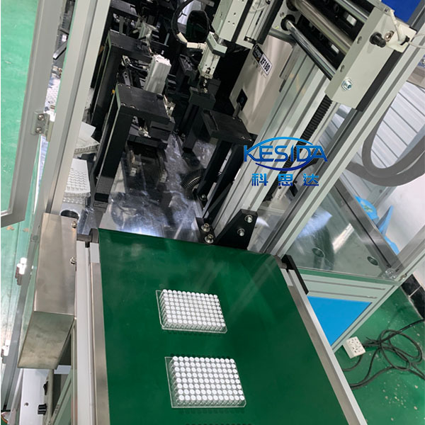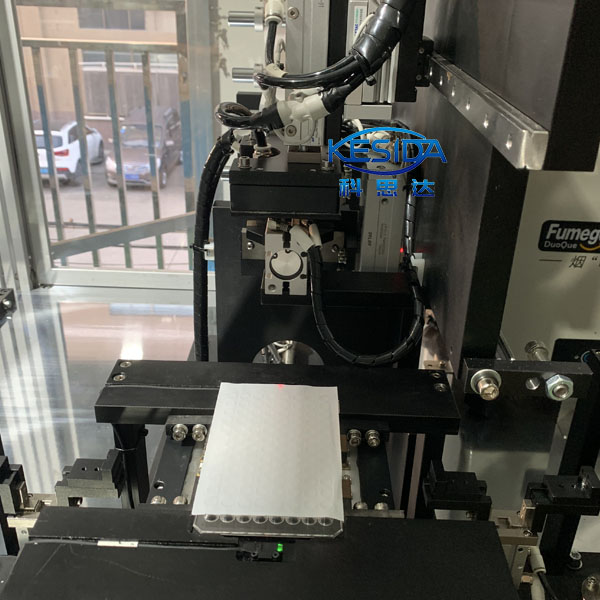 本机为过滤器高精密组装激光切割生产线设备, 便于运输,设计为直线式组合结构,便于透明塑胶孔板叠加式可切换式自动供料;机械手自动夹料;自动规正,直线传送产品设计为伺服顶升移载机构。工艺为:等离子吹风除尘,自动丝网高精准对位上胶(UV胶).滤纸卷料方式自动来料.自动拉料定长切断.吸盘自动吸料组装滤纸, LED冷光源自动UV固化,激光自动切割滤纸边料.机械手自动下料到拉带,人工检验,为下工序工艺准备,产品一致性好,操作简单方便,下机架为铝合金型材机架,上机架铝合金型材加透明压克力安全罩,使用安全,PLC控制.触摸屏显示操作.具有完善的报警提示及记忆功能.