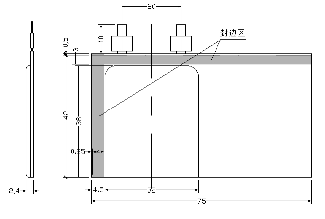 18.极耳槽位封印不得压到极耳金属部分,封后极耳中心线与极耳理论中心线偏离不大于0.3mm,极耳胶突出0.3-0.8mm;