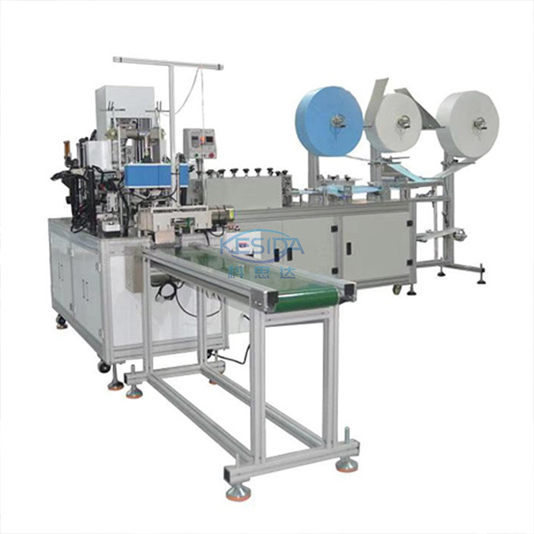 平面口罩外耳带机采用PLC控制系统,触摸屏设置,操作简单便捷,是一台全自动化生产平面医用口罩的机器,具有超声波点焊耳带、成品收集等功能。